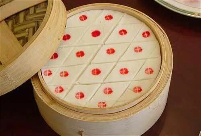 蒸米糕用于待客時,表面加紅糖、玫瑰糖;