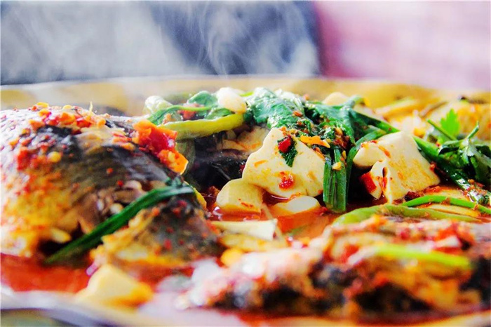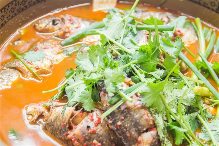 以洱海鯽魚為主材,大理酸辣魚搭配紅椒、青椒、木瓜、楊梅或烏梅為原料,豆腐、土豆為輔料,用土灶燒柴火煮成。嘗上一口,鮮甜甘美,鮮香的魚湯用來泡飯也是一絕。