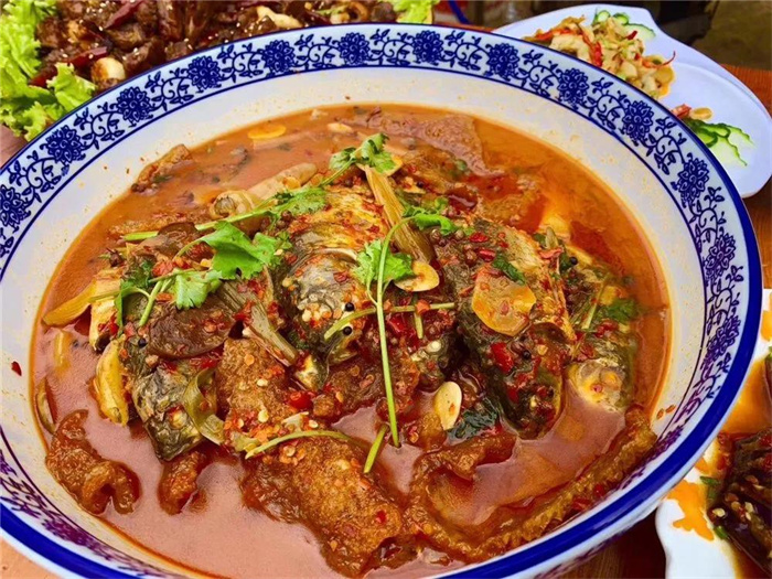 大理酸辣魚,味美鮮香,酸木瓜的酸夾雜著其特有的果香,干辣椒面與糟辣椒搭配而成的辣,酸辣可口,讓人百嘗不厭,是白族人家都喜歡的一道宴客菜。