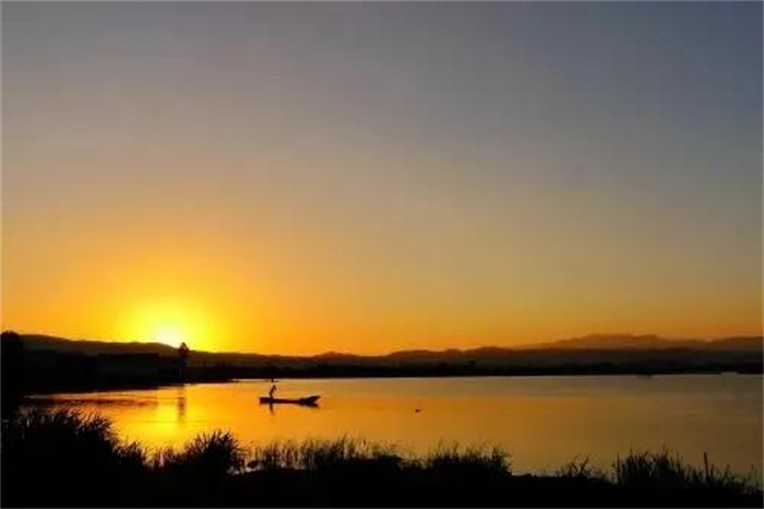 置身洱源西湖,仿佛置身一個神秘的天國。除了風聲、歌聲、鳥聲,整個西湖闃寂無聲。秋日的余暉輕輕拍打著它,它仰天向上,把神秘的幸福密碼深壓在身下。“湖光蕩漾幾回紋,漁父歌聲鬧水濱,信口舢敲湘漢句,斷腸弄笛雁鴻云。三三對白煙蓑合,兩兩歸帆獲岸分。最趁夕陽含缺處,前村沽酒帶余醺。”在這樣一幅背景中,偶爾還能看到牧童嬉鬧,大娘浣衣,村姑笑吟。