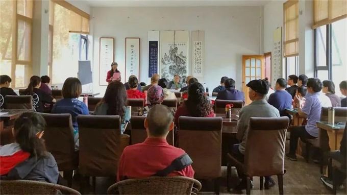 “李元陽的時代離我們遠去久矣,但大理的山水自然還在,讀書人的文脈還在。”2015年,當陽和茶場旁的一片殘垣老屋面臨轉型改建時,李云珠心里的種子終于發芽,“建一所書院,名字就叫元陽書院”的想法幾乎就在不假思索中落地?!霸枃鴮W館”“書法傳習館”“大理市文藝創作基地”“大理老年大學元陽書院分?!毕嗬^在此掛牌。建院以來,元陽書院持續舉辦學術研討、經典誦讀、書法、繪畫交流等活動,聘請大理大學退休教師及專業文化人士每月開辦文津講壇,公眾可免費參與。