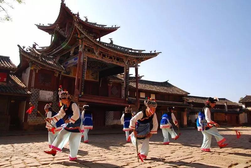古戲臺是寺登四方街上最具特色的古建筑,每逢民族節(jié)日,沙溪白族兒女各自身著節(jié)日盛裝,彈著龍頭三弦,齊聚四方街,在戲臺上載歌載舞。