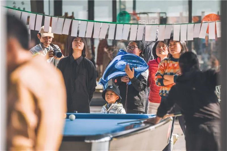 即使旁邊的火舞異常火熱,也絲毫影響不了正在專心打臺球的球友們,彎腰、瞄準、出桿,一套動作行云流水,帥氣瀟灑。在這里,年齡不是問題,上至六七十歲,下至十幾歲,都可以上桌秀上一把自己的絕技,若遇到“麋鹿杯臺球友誼賽”,還可以與多個高手來上一場酣暢淋漓的比賽,贏得精美的獎品,收獲一整天的快樂。